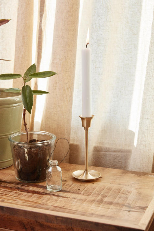 Lysestage antique natur til bloklys H10 Ø9 cm