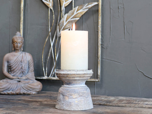 Lysestage antique natur til bloklys H10 Ø9 cm
