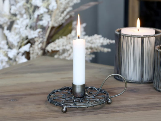 Lysestage med blomst og blade stor H19 Ø6,5 cm
