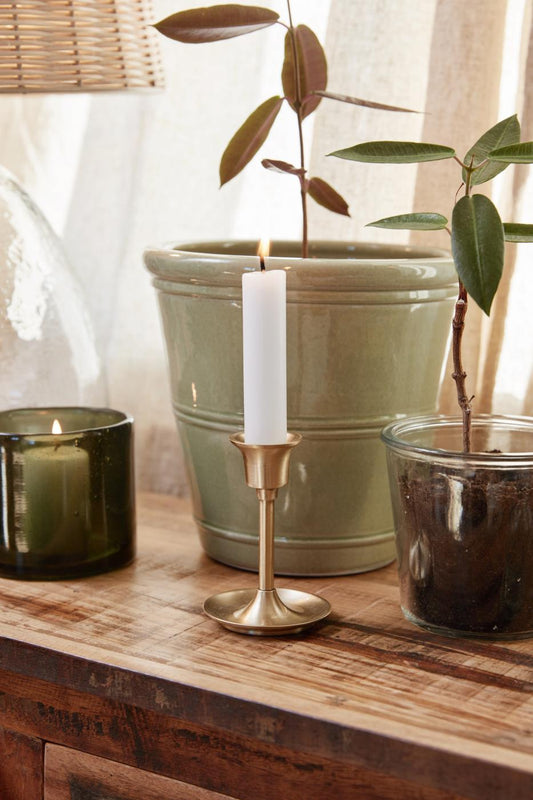 Fyrfadsstage i glas med rattanflet H6.4 Ø6,4 cm